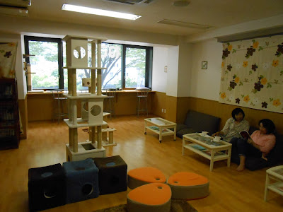 Tadashi - suivi par un chat vert (!) - nous guide alors dans le quartier de Dotonbori où, là aussi, de grandes enseignes de restauration illuminent les rues. Nous nous installons dans un restaurant de kushikatsu et, après une petite explication de notre spécialiste sur la marche à suivre (saucer ou ajouter du sel selon le contenu, se resservir de sauce en utilisant une feuille de verdure comme cuillère, etc.), nous attaquons notre repas composé de nombreuses brochettes panées de toutes sortes : porc, poulet, saucisse, légume, fromage... Voyez le menu en anglais que j'ai photographié, il y en avait une de chaque sorte par personne !