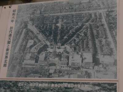 Nous nous baladons dans différents quartiers (en prenant le métro pour circuler plus vite), dont Shinsekai au sud, dominé par sa tour Tsutenkaku (103 m de hauteur) qui n'est pas sans rappeler une certaine création de Monsieur Eiffel. D'ailleurs, des photos anciennes dans une galerie nous confirment qu'Osaka aime s'inspirer de Paris pour ses monuments et son tracé.